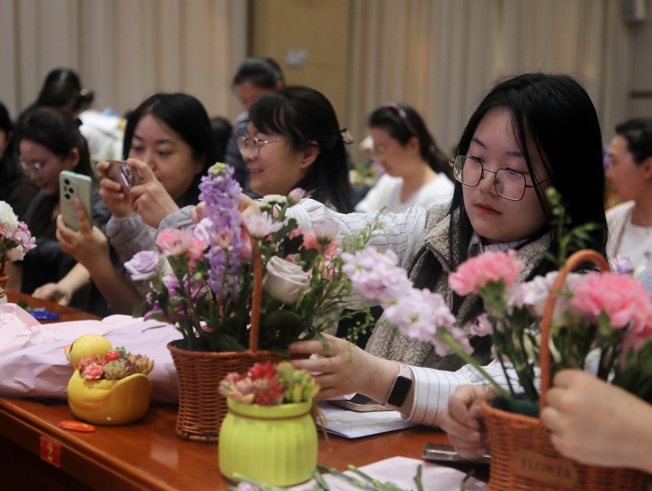 3月5日,宁夏回族自治区银川市西夏区总工会组织开展了“美妆礼仪提素养 巧手匠心绽芳华”美妆礼仪培训暨多肉手工插花制作活动。此次庆祝“三八”国际劳动妇女节活动吸引300余名女职工踊跃参与,她们欢聚一堂,共同庆祝属于自己的节日,在轻松愉快的学习氛围与创意手工实践中感受美好生活、展现巾帼风采。